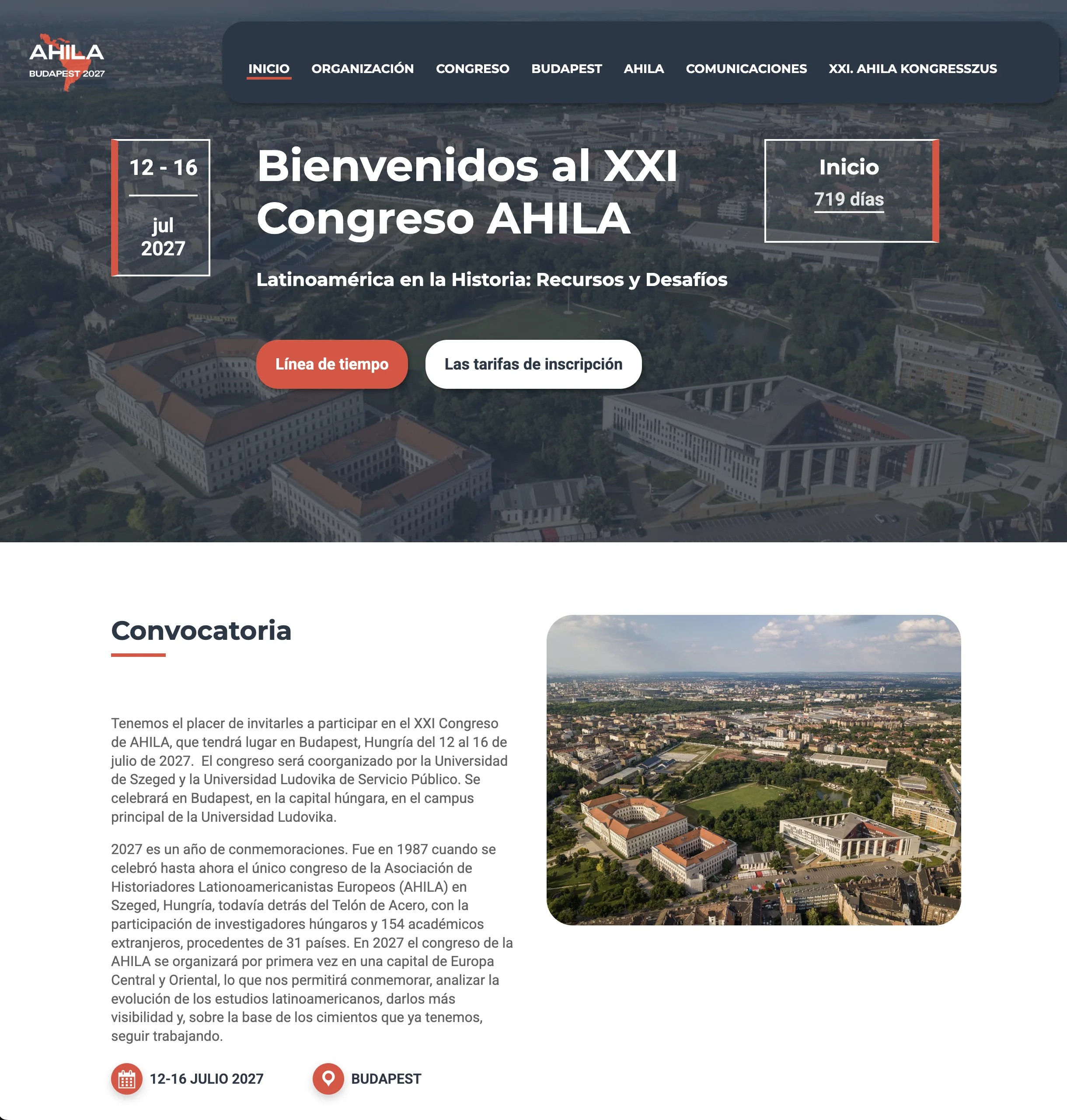 Ya está a disposición la página web del XXI Congreso AHILA, que se celebrará en Budapest del 12 al 16 de julio de 2027.